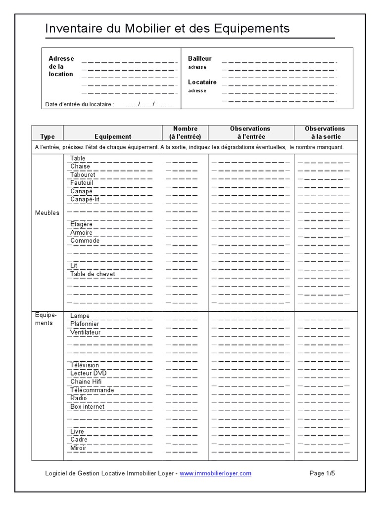 Modèle gratuit inventaire du mobilier. Postat 19 februari, 2019författare jakob. L'inventaire mobilier location meublée a un rôle complémentaire similaire à celui de l' état des lieux. Votre modèle gratuit d'inventaire du mobilier d'une location meublée. L'inventaire du mobilier est un document qui décrit les équipements tout d'abord, l'inventaire du mobilier se doit d'être produit en autant d'exemplaires qu'il y a de partie, soit.